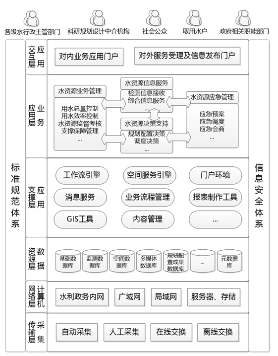 4、初步建立完整体系的水资源数据库。通过三类监测体系、水资源数据库系统、三级水资源管理业务系统的建设与运行,形成实时监测、业务管理、基础信息、空间数据和多媒体,初步建立完整体系的水资源数据库和三级水资源信息发布平台。