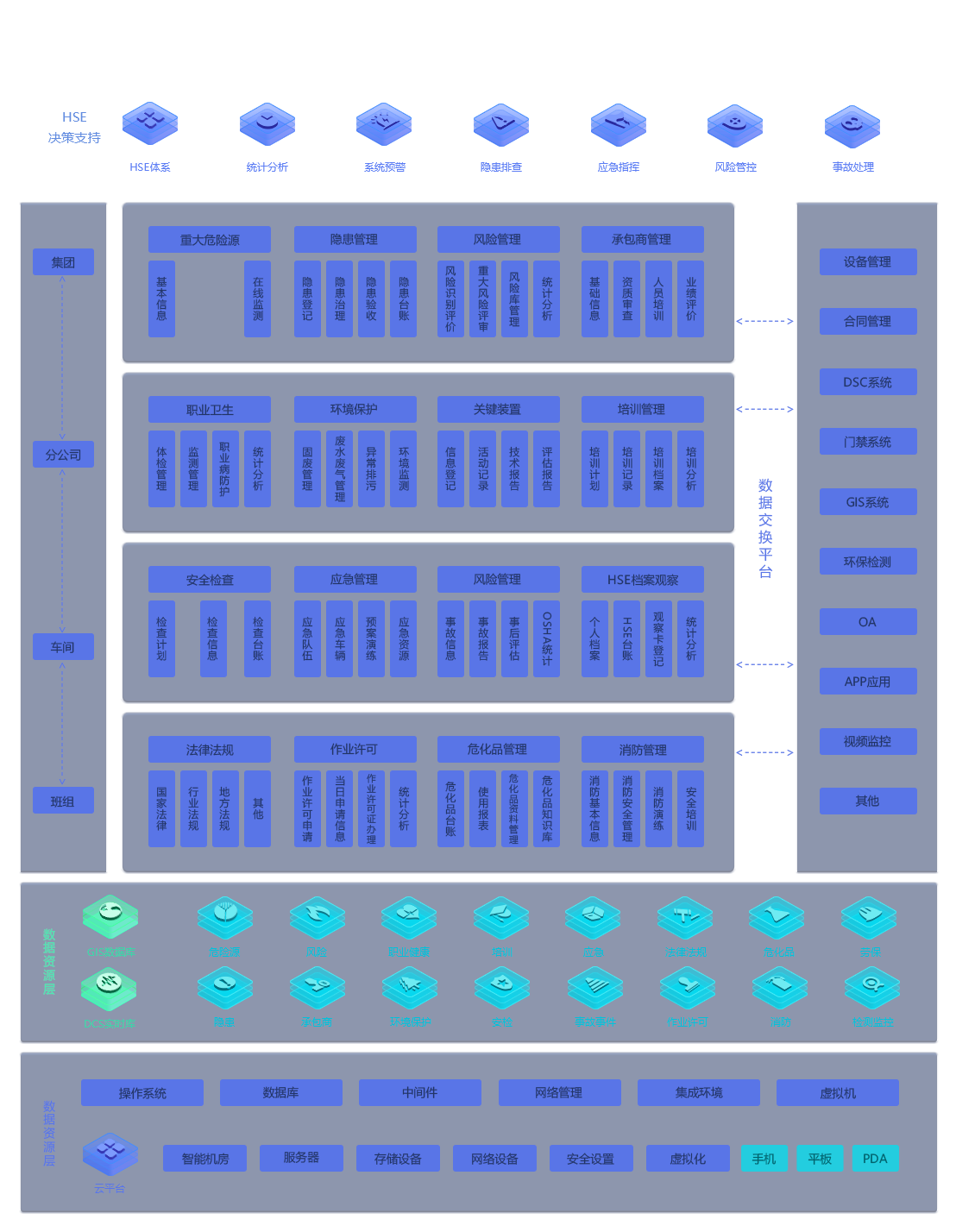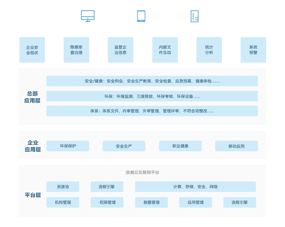总部应用层:建立管理和健康安全环保体系,提供企业安全现状分析 成人无码视频,隐患排查治理,企业信息监管,内部文件互动以及其他各项数据的统计分析和预警服务。