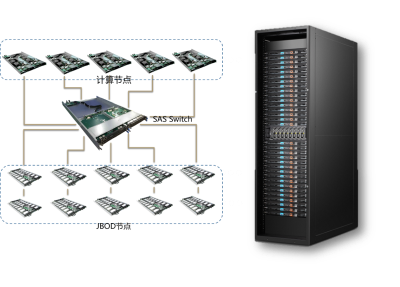 采用业界标准SAS基础架构的浪潮SAS Switch 青娱乐极品视觉盛宴,可提供分等级存储的解决方案,整个设备仅占用1U 浪潮整机柜婷婷五月宗合一区二区SR系统节点空间,上行与SAS卡或计算节点相连,下行连接JBOD或直接挂接硬盘等存储设备,整体可连接超过200个存储设备,打造15PB以上的超大存储池。