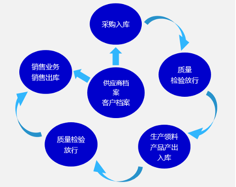 实现了从采购→质量→生产→质量→销售的业务流程闭环,通过上下游单据的关联,可以更好的进行信息追溯,实现多业务之间的协同管理。