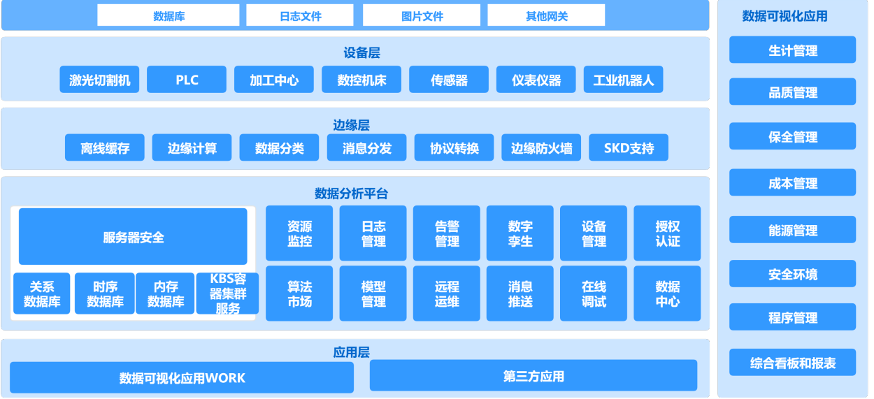满足客户生产安全工程中机器人高性能作业需求 青娱乐极品视觉盛宴,通过设备层基于软网关物理连接到边缘层,通过协议在数据分析平台上进行整体分析,最终在应用层可视化展现。