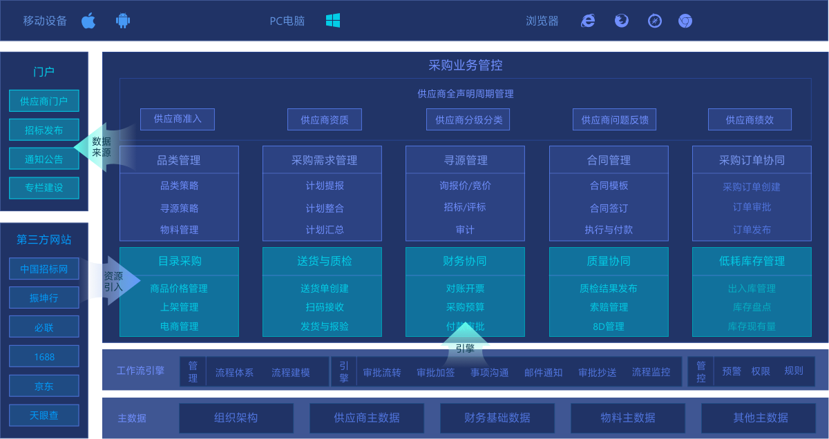 (1)电子采购平台需要实现多个采购单位的采购业务在一个系统平台实现,支持多种采购管理业务流程,具备支持多法人,多需求单元,多采购组织,多库存地的采购,实现集团高效采购,阳光采购,集中管理的目标,(2)通过流程化,阳光化 婷婷五月宗合一区二区,信息化,专业化四化采购,构建以内外顾客为中心的阳光,高效,持续创新的集团非生采购管理标杆体系,保障主业务顺利开展,其中信息化是实现阳光化和流程固化的有效途径,是实现采购战略愿景的关键应用工具,(3)通过供应商协同,精准要货计划,发货计划,通过多系统对接实现内部客户申请后的供应商直发功能以及移动操作功能,提高采购和到货周期以及对账效率,降低库存,通过内部顾客协同,提高采购信息反馈的有效性,降低人工成本,(4)通过统一平台组织和账套的新建和调整,应用接口的复制和扩充,具备快速支持组织机构调整,新组织纳入及组织拆分或合并等所带来的管理变更或推广的管理需要。