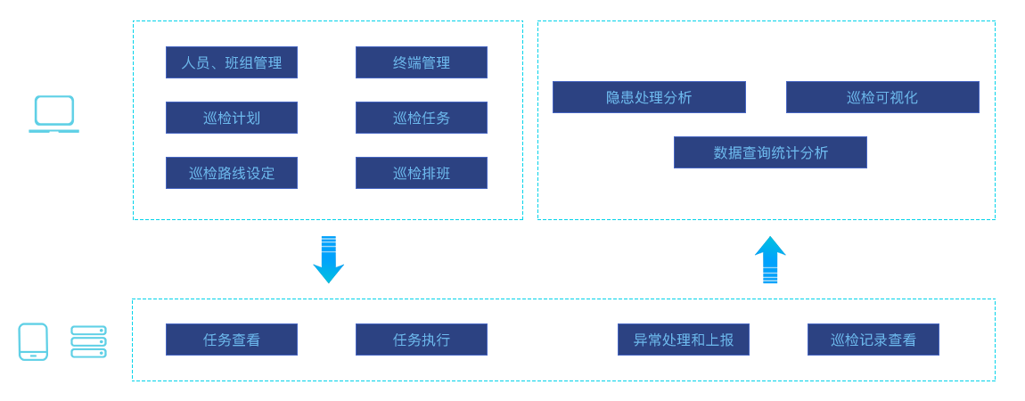 PC端进行人员班组管理,终端管理 亚洲欧美成人精品香蕉网,制定巡检计划和设定巡检路线,并进行巡检排班和任务下发,同时接收巡检终端的巡检信息,可进行隐患分析处理,巡检可视化查看以及数据查询统计分析。