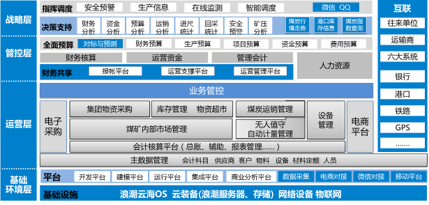 搭建集团管控信息化平台,为高层决策者建立决策支持系统,全面查询统计分析数据,以大数据思维寻找规律,为决策支持提供依据,针对集团管理,在全面预算系统的统一管控下,实现集团统一管理财务,运营资金,物资供应,煤炭运销,矿业设备等业务,构建具有煤炭行业特色的集中管控信息系统,助力煤炭企业的管理创新,降本增效,促进转型升级,实现煤矿生产经营精细化管理,通过煤矿内部市场化管理系统构建集团,煤矿,区队 青娱乐极品视觉盛宴,班组,个人的内部市场化体系,采用阿米巴管理方式,预算,结算业务数据的一体化控制,进行煤炭生产过程价值链管理,降低生产成本。