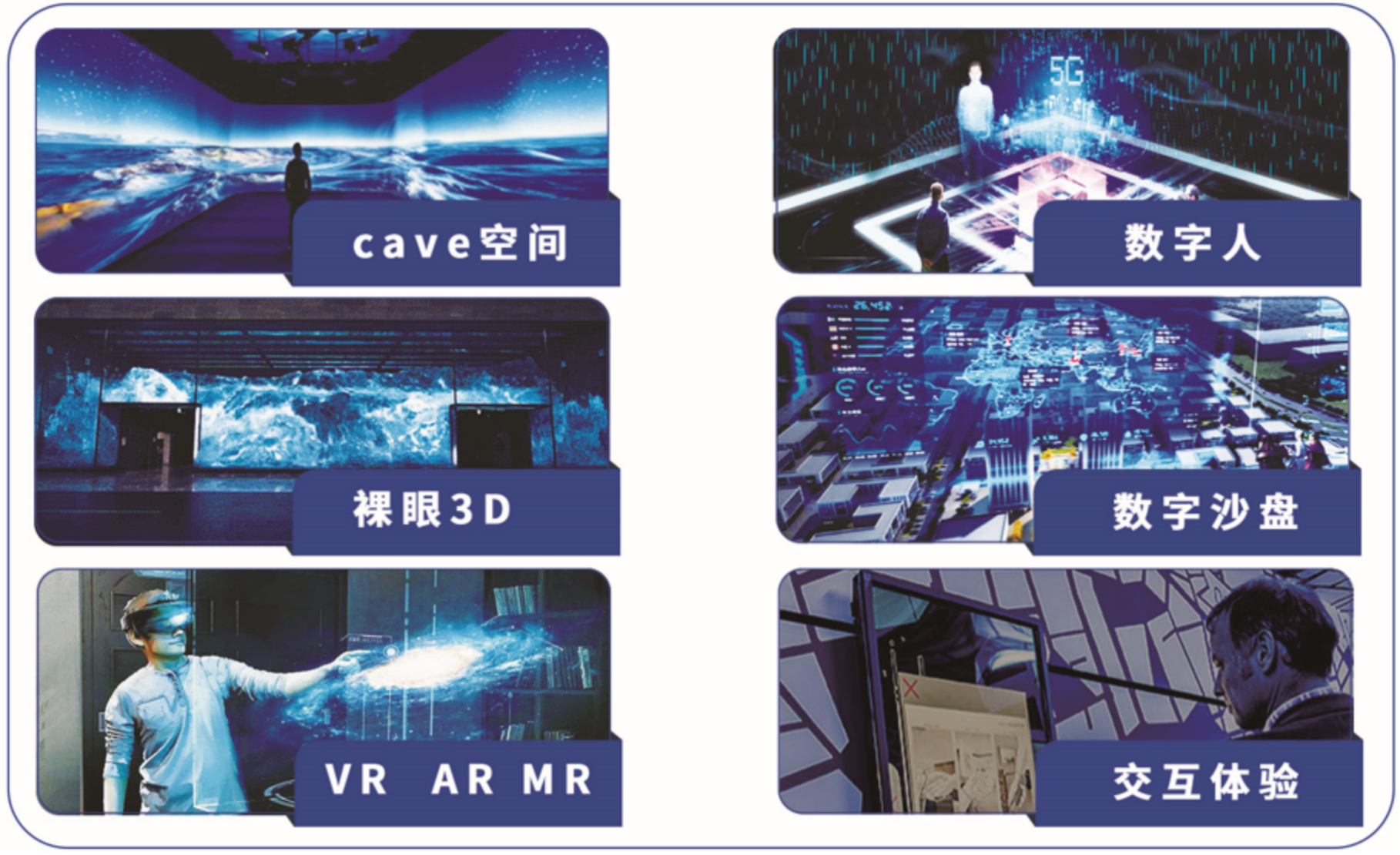 核心产品有:CAVE空间 电影区欧美电影,数字人,裸眼3D,数字沙盘,VR,AR,MR,交互体验等。