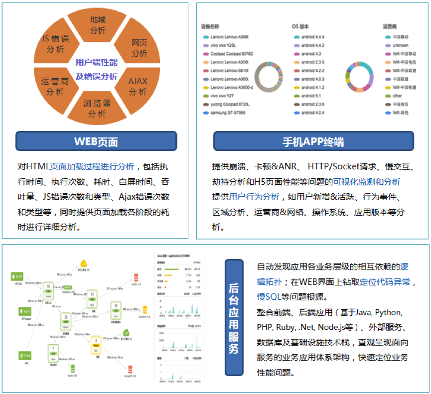 应用质量管控系统采用探针技术对浏览器,App,后台应用进行监测,实时进行数据采集分析,呈现检测节点的关键性能指标,探针的实现技术是基于字节码增强框架ASM 婷婷五月宗合一区二区,被测系统的性能影响在5%以内,网络流量影响可以忽略,在1%以内。
