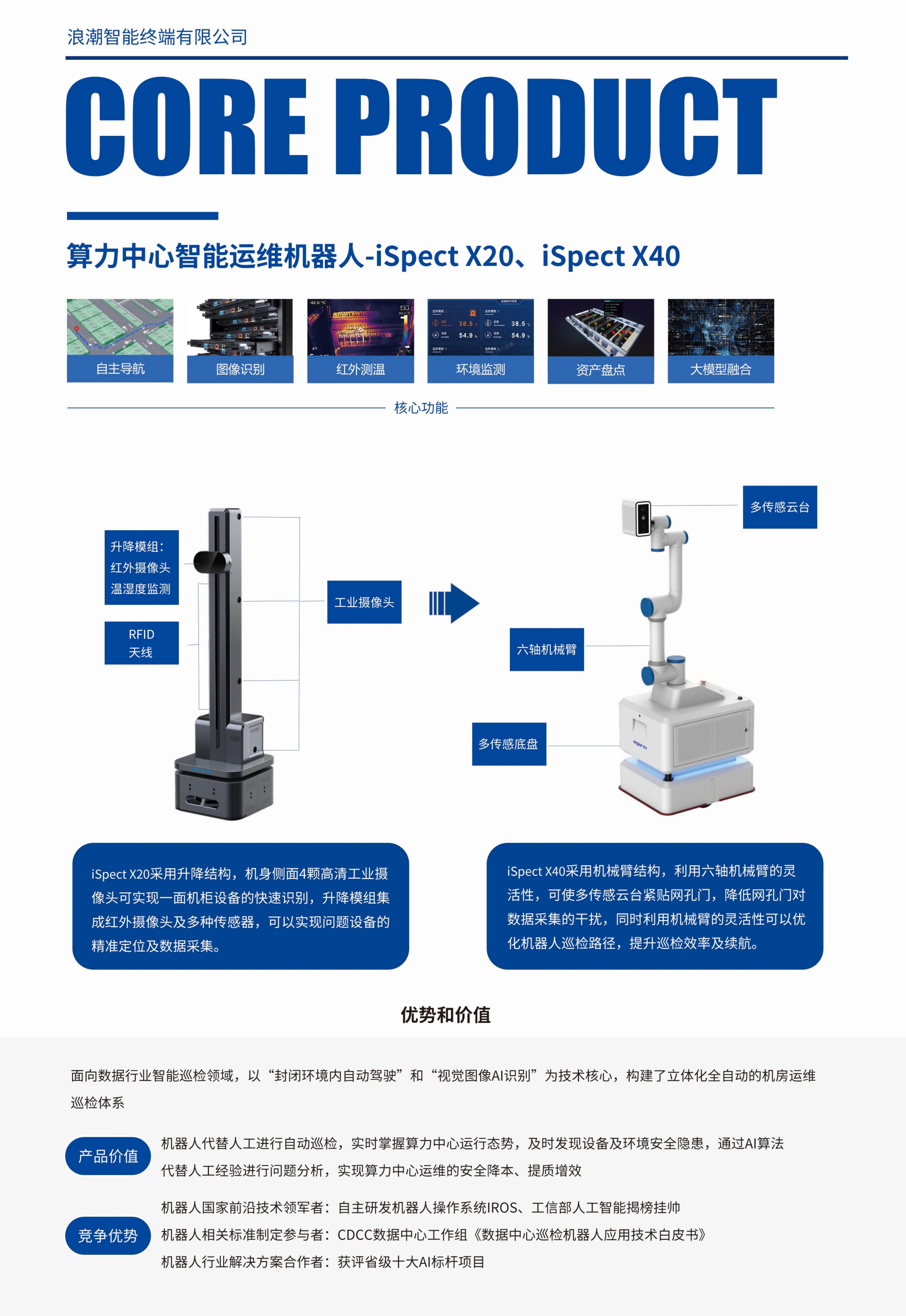 面向数据中心,配电室,工业园区等场景,拥有设备盘点,智能识别,气体检测及远程驾驶等功能 青娱乐极品视觉盛宴,降低运维成本和提升能效,协助打造高效数据运维和管理系统。