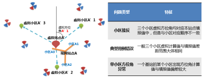 基于网络运行的数据(切换统计,MR测量等)可以计算出虚拟站点和虚拟小区,将虚拟小区与虚拟站点进行连线得到虚拟方位角,通过对照站点下小区实际方位,根据特征进行分析,可以进一步应用于方位角核查,有效发现和解决天线接反 电影区欧美电影,典型用例错误,单小区方位角异常等问题,保障了方位角的数据质量。